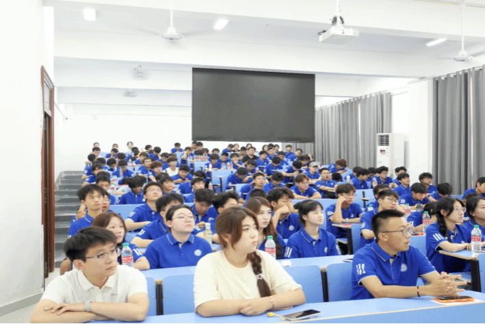 作为“全国首批党建标杆院系”的精神图腾,院训“明德笃志、严谨创新”是指引成长之路的精神旗帜。“明德”是做人的根基,是“以德为先”的人生准则;“笃志”是征途的灯塔、前行的脊梁;“严谨”是治学问道的基石,是科技报国的底气;“创新”是破浪前行的风帆,是青春逐梦的引擎。他强调,大学是校准人生航向、锚定远大抱负的“立志赛场”,要养成“差之毫厘、谬以千里”的敬畏心,为未来攀登科技高峰积蓄“稳扎稳打”的力量,希望同学们让学习成为生活的“主旋律”,牢记学习是学生的本职;让健康成为人生的“压舱石”,以安全健康的身心迎接挑战与机遇;让思考成为成长的“导航仪”,主动培养创新思维,在时代浪潮中用青春年华书写属于自己的绚丽篇章。