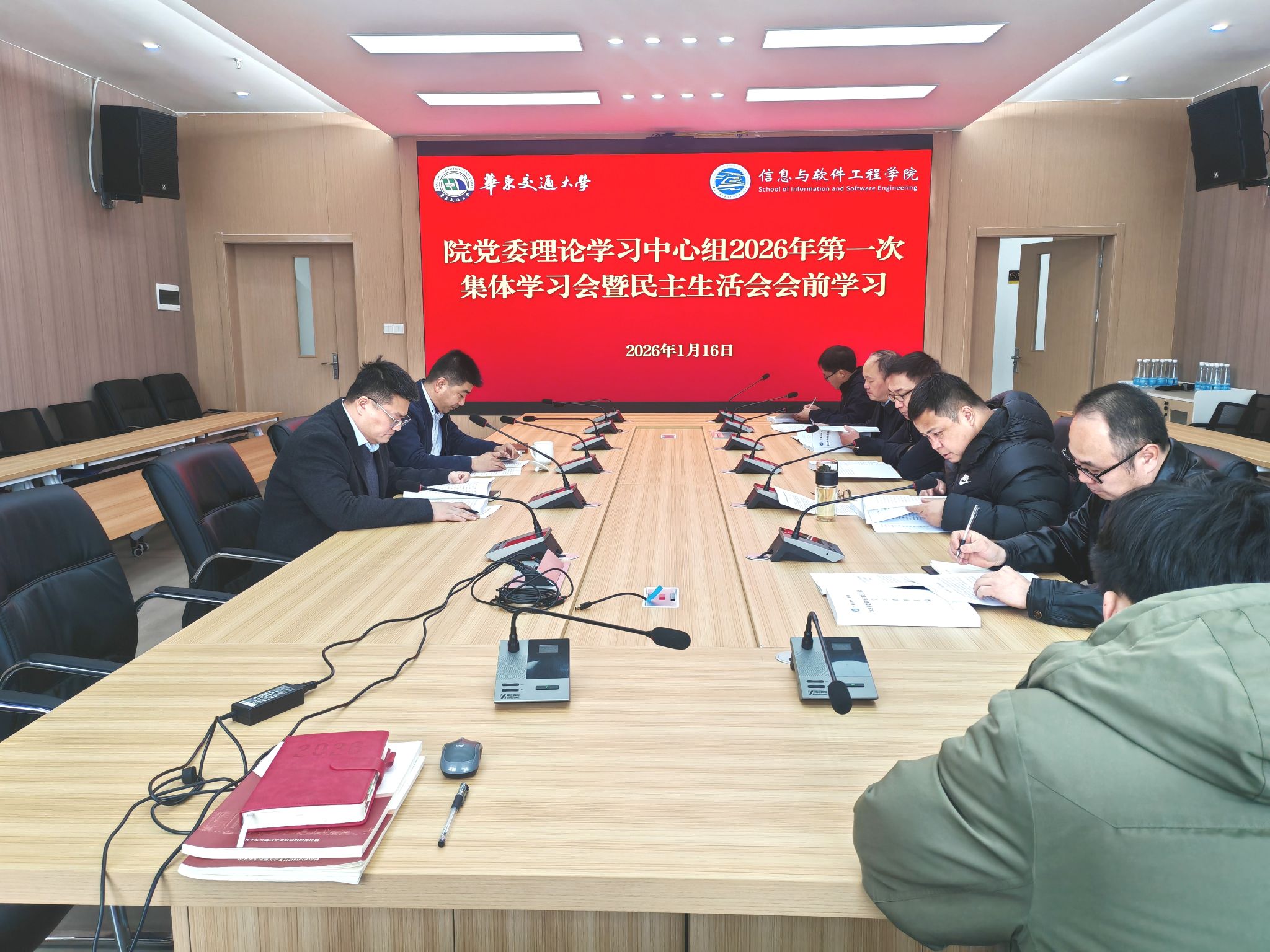 党委理论学习中心组2026年第一次集体学习暨民主生活会会前专题学习在教26栋9楼第一会议室召开。学院党委书记魏永峰主持会议,全体中心组成员参加会议。